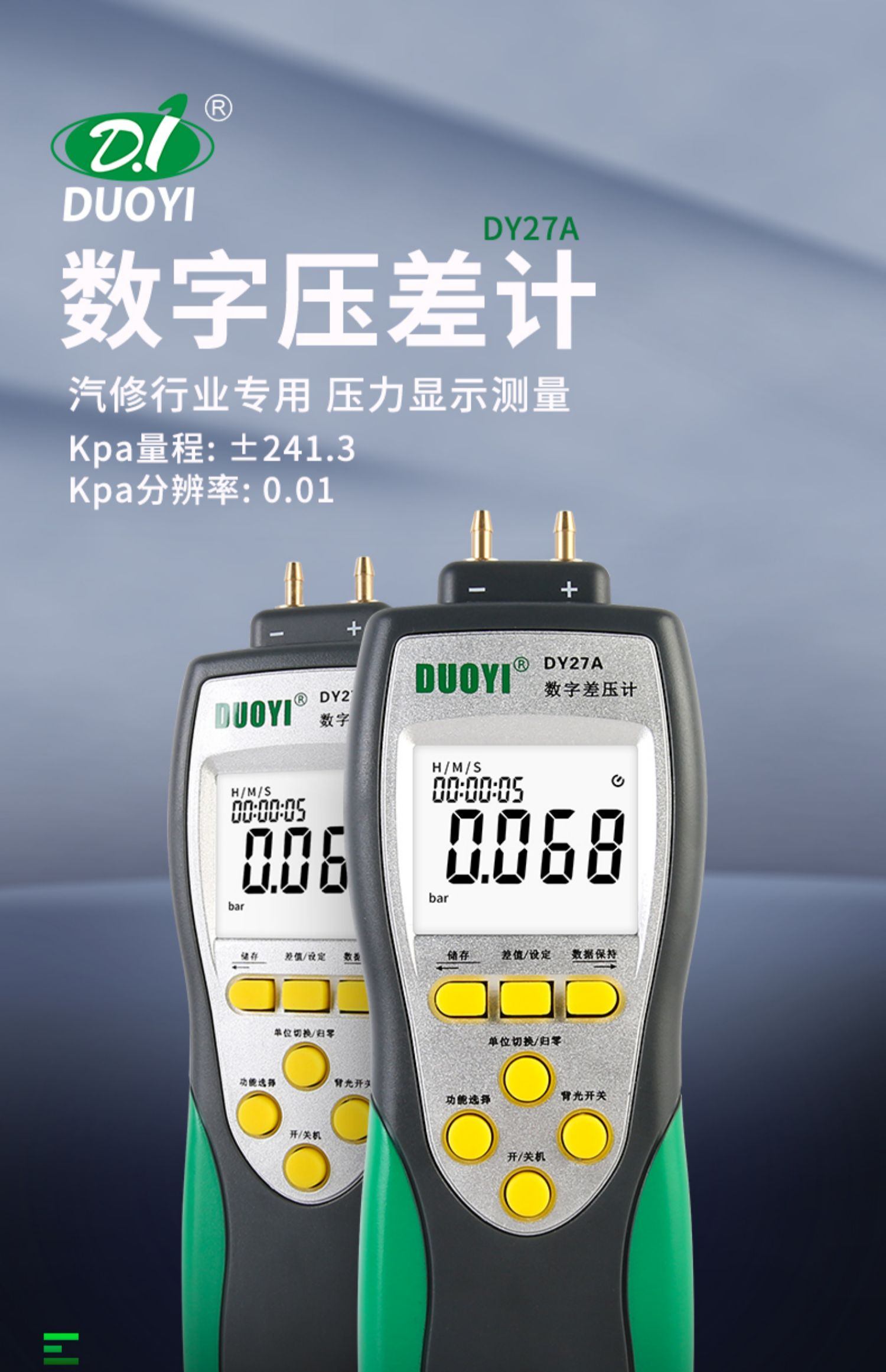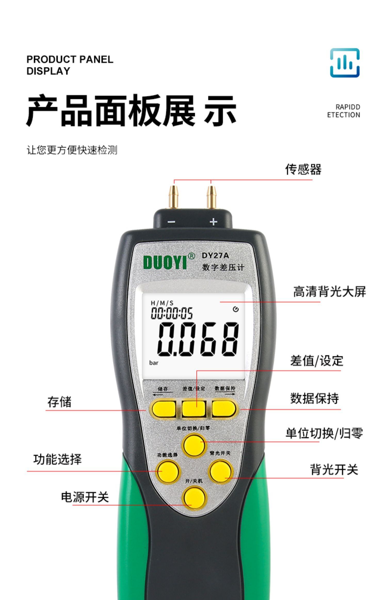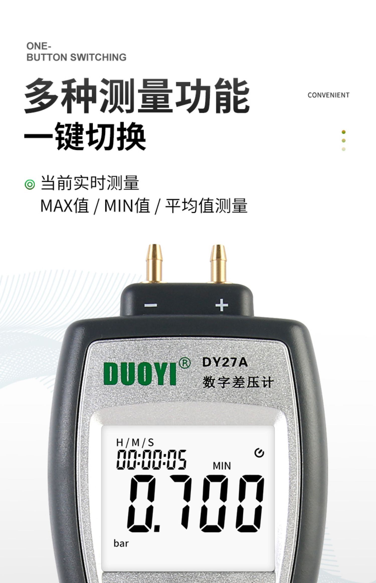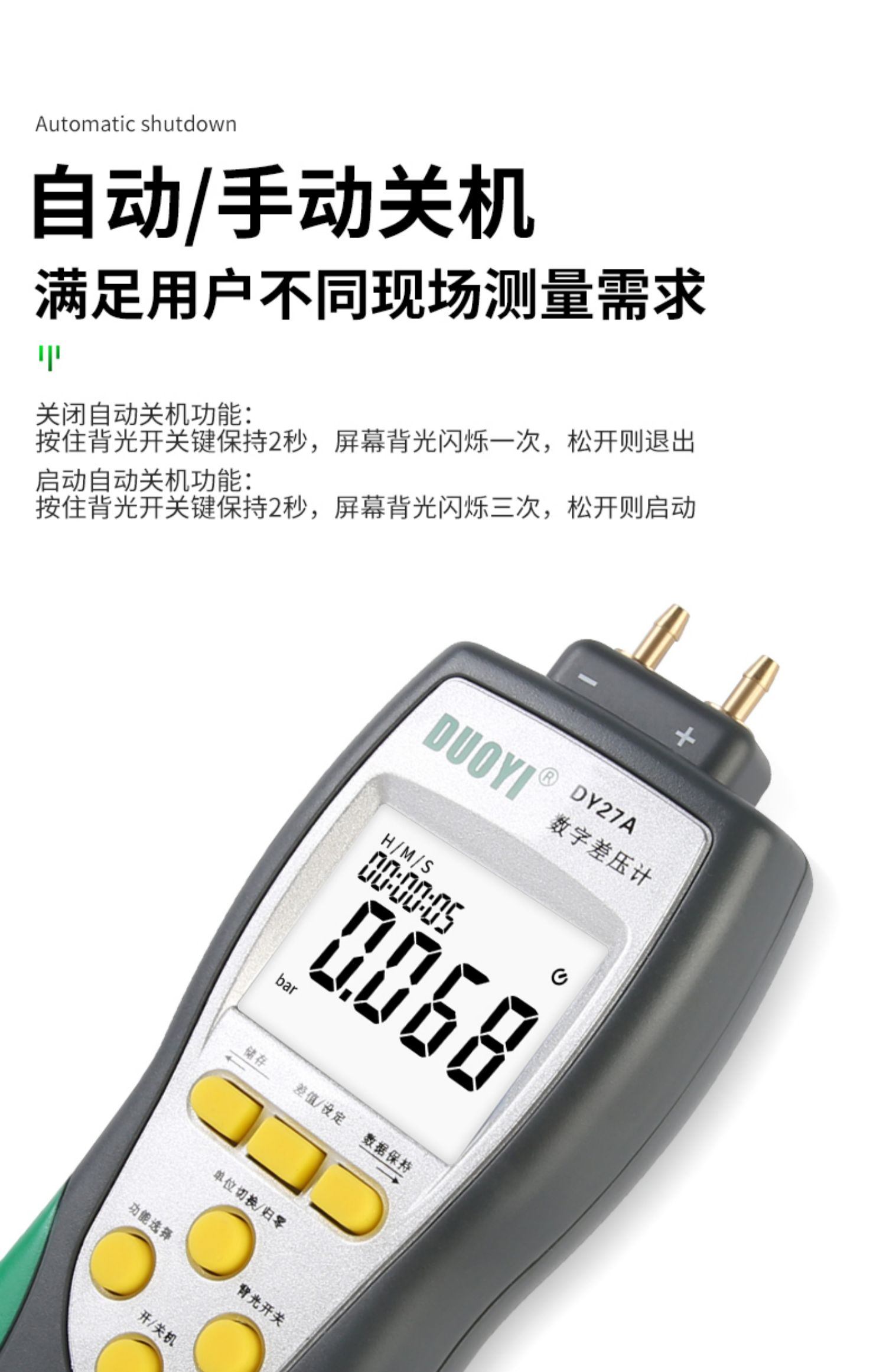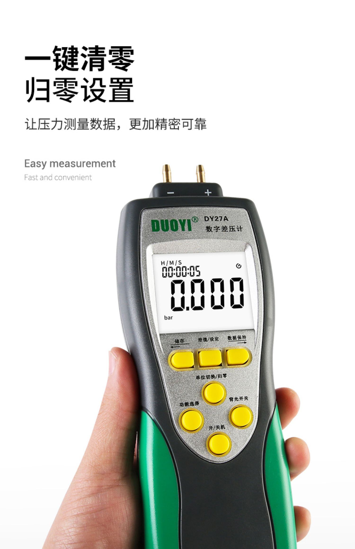 多一DY27A压力表差数显微压差计手持式微压计气压表检测仪压差计