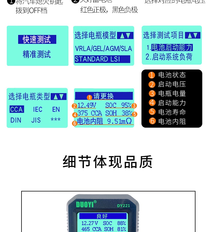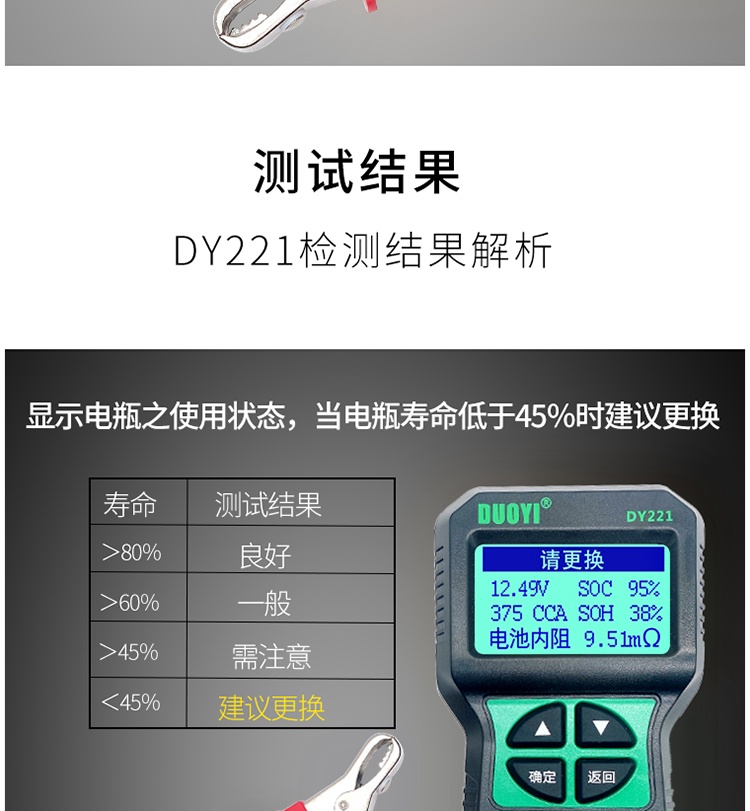 多一DY221/2015系列蓄电池检测仪汽车电瓶测试仪寿命蓄电池测