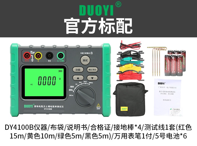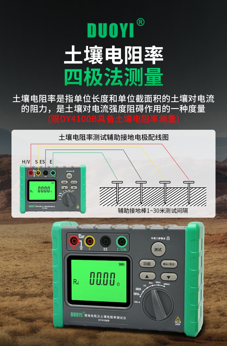 DY4100A/DY4100B接地电阻测试仪充电桩接地测量仪光伏电压防雷电阻仪
