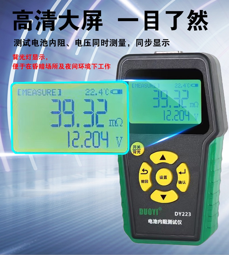 汽车铅酸蓄电池锂电池电瓶检测电压测量内阻检测仪DY223