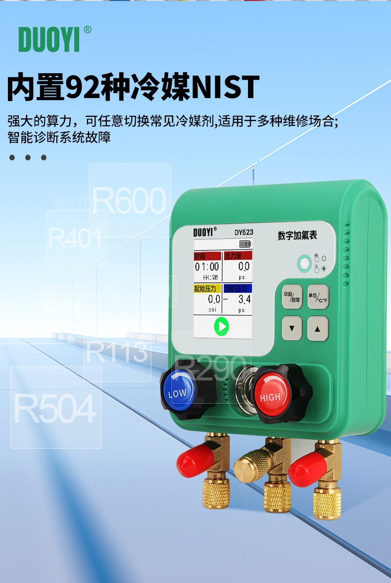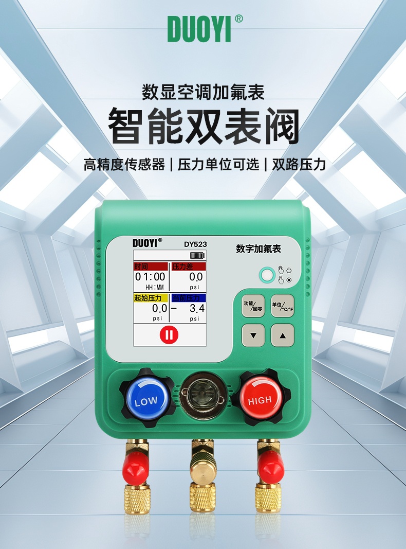 DY523电子空调冷媒加氟表组压力表汽车制冷剂加液维修真空表